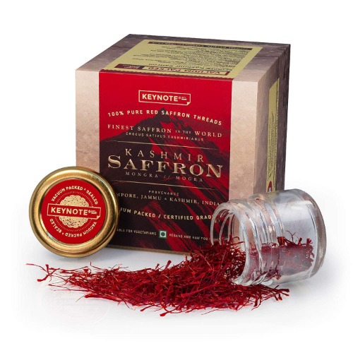 100% pure Kashmir Saffron, certified quality, cooking must-have, vibrant color, distinct aroma, premium spice, eco-conscious packaging, luxury gift idea