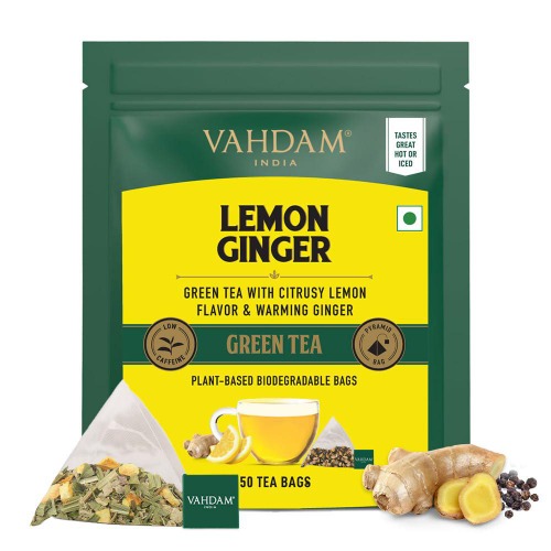 Lemon Ginger Green Tea (Té Verde de Limón y Jengibre | Vahdam) 50teabags
