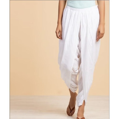 This relaxed fit ladies white dhoti pant gently combines usefulness and style. These pants, custom designed for women, are sleeker and well fitted. With convenient drawstring fasteners at the waist that can be fastened at the sides, for a fuss-free look. No elastic at the waistband for a cleaner finish and better comfort. Suitable for yoga practices as well as everyday wear it allows you to combine the utmost comfort with that inimitable Isha style. Fabric: Organic CottonFit: RegularCraft: HandspunStyle: Festive and causalWash instruction: Hand wash with cold water, wash dark colours seperately.Style tip : This solid dhoti is ideal for casual outings. Also can be worn for a festive occasion with any colour kurta.
