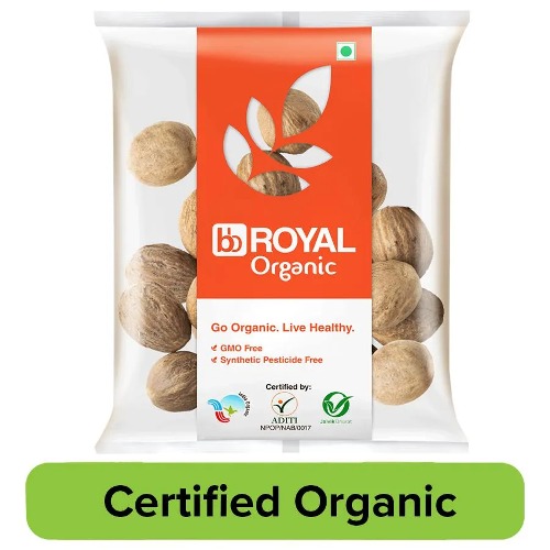 Organic nutmeg, whole seed, fresh aroma, versatile use, sweet and spicy, baking essential, healthy, premium quality, sealed for freshness, sauces